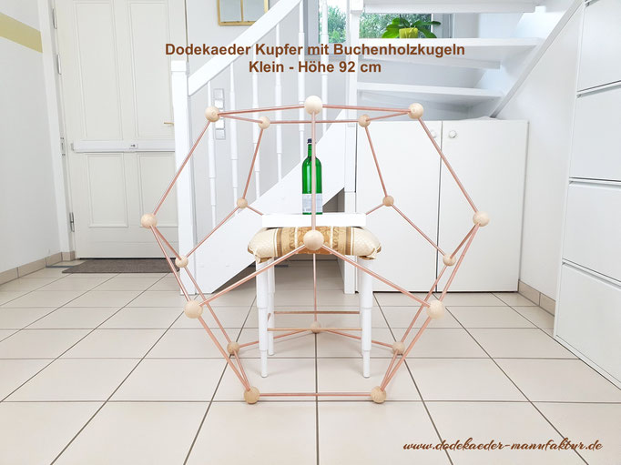 Die Dodekaeder lassen sich leicht auf- und abbauen und transportieren. Sie sind hauptsächlich für den Innenbereich gedacht, denn Kupferstäbe neigen bei Feuchtigkeit dazu anzulaufen und das Buchenholz neigt dazu bei Regen aufzuquellen. Bei trockenem Wetter kann das Dodekaeder auch mit nach Draußen genommen werden. Durch die Behandlung mit Leinöl oder Wachs kann Buchenholz vor Feuchtigkeit geschützt werden. Die Maserung und Farbe des Buchenholzes wird dadurch intensiver in Richtung gelb-rötlich.