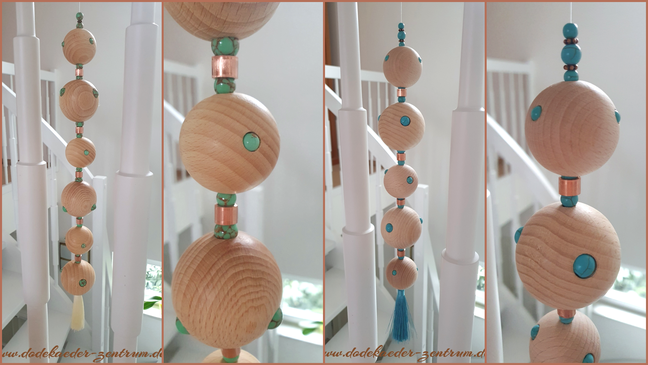 Die Kupferstäbe in roségold - von Hand geschliffen und poliert - harmonieren auf wunderbare Weise mit den Buchenholzkugeln.